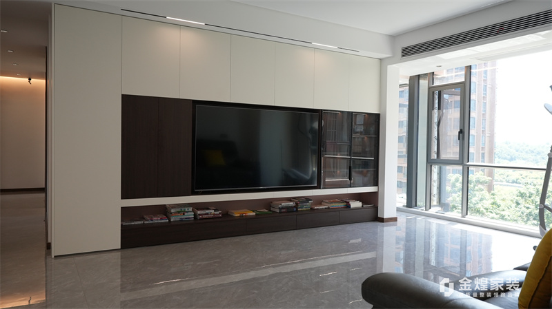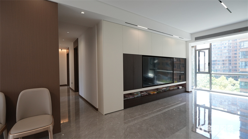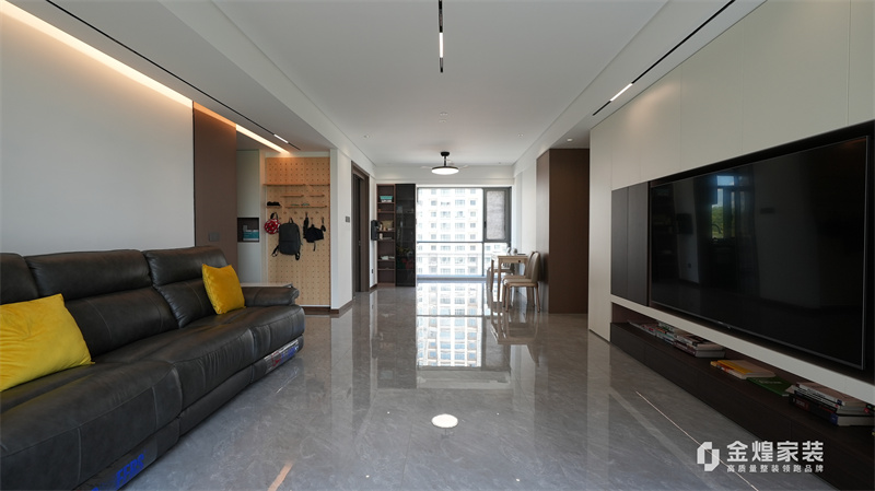 整體色調(diào)以黑白灰為主,簡潔明快,沒有過多的裝飾,體現(xiàn)了現(xiàn)代意式風(fēng)格的特點(diǎn)??蛷d的布局開闊,家具的選擇也以簡約為主,如黑色皮質(zhì)沙發(fā)、簡潔的電視柜等,都符合現(xiàn)代人的審美。