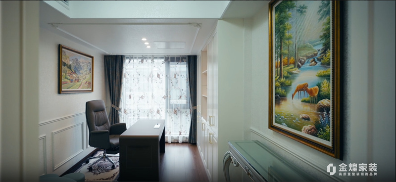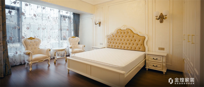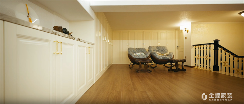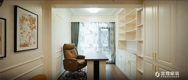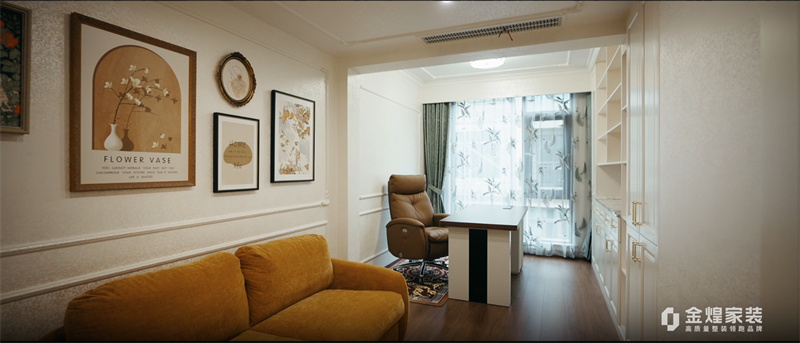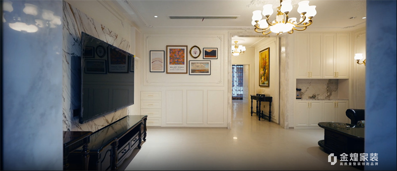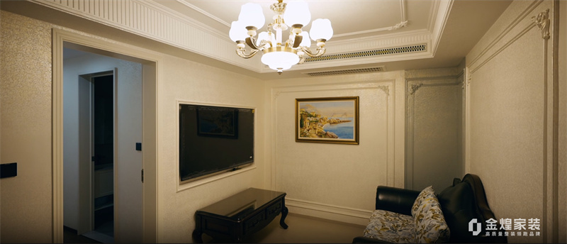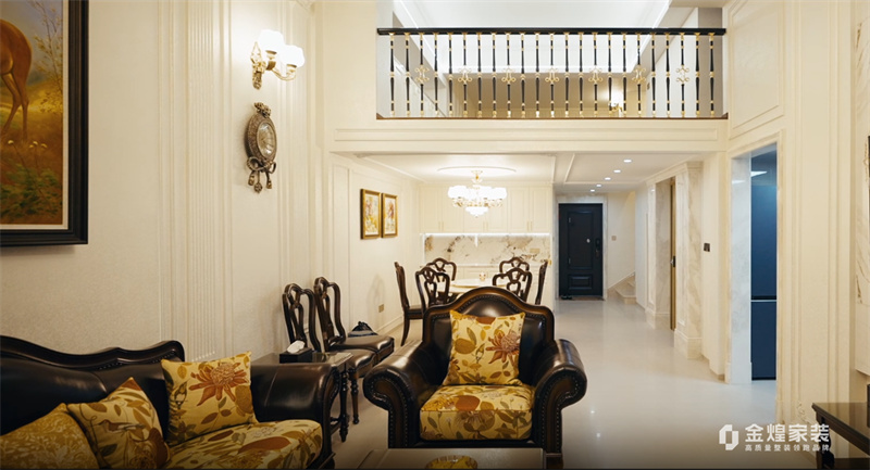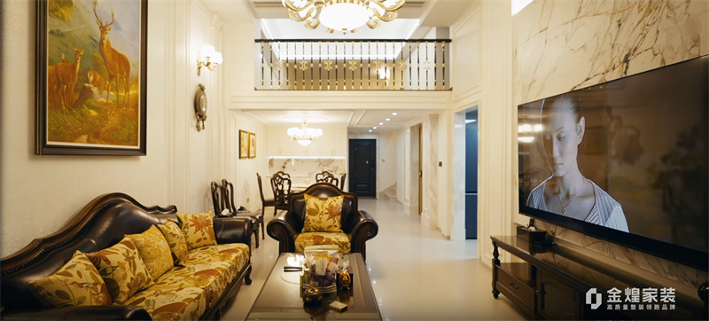 從客廳的皮質(zhì)沙發(fā)、木質(zhì)茶幾、華麗的吊燈,到墻上的裝飾畫,都體現(xiàn)了法式風(fēng)格的經(jīng)典元素。同時,整體色調(diào)以暖色為主,營造出溫馨的氛圍。