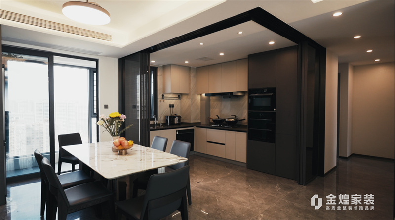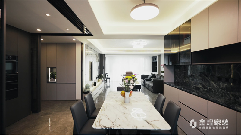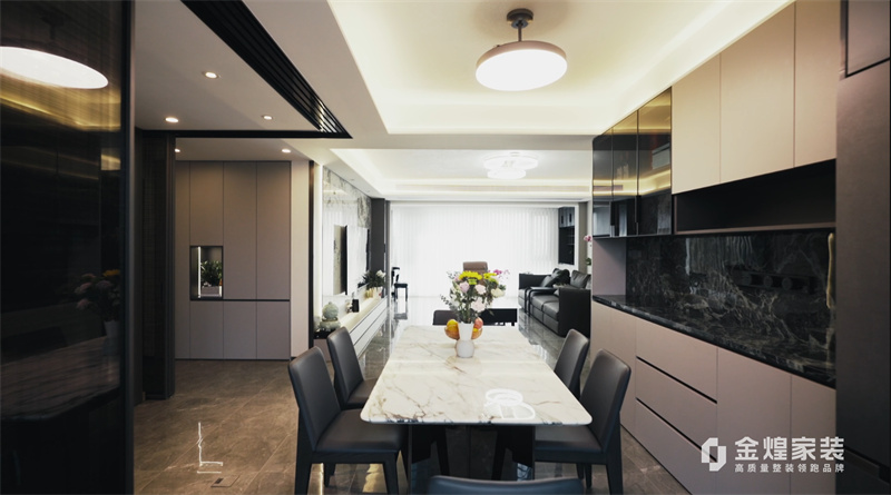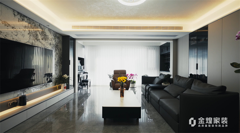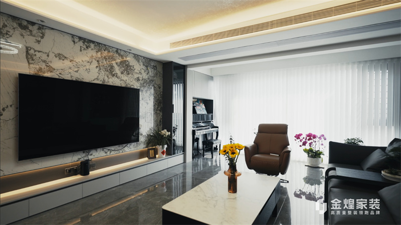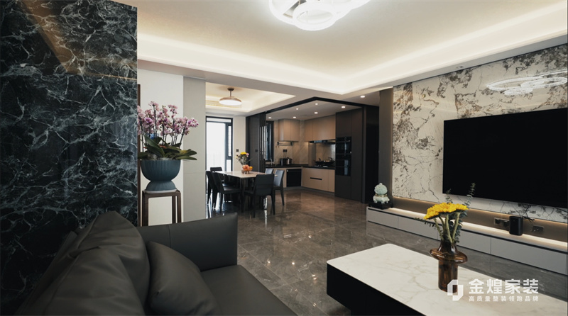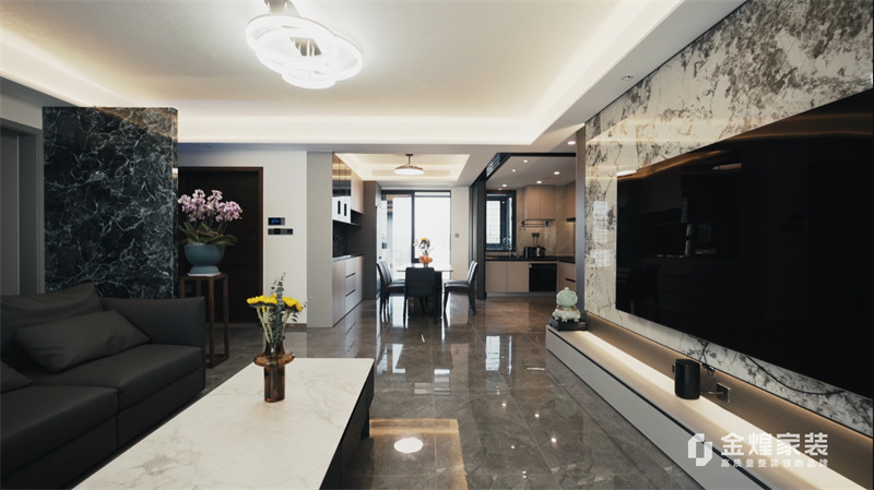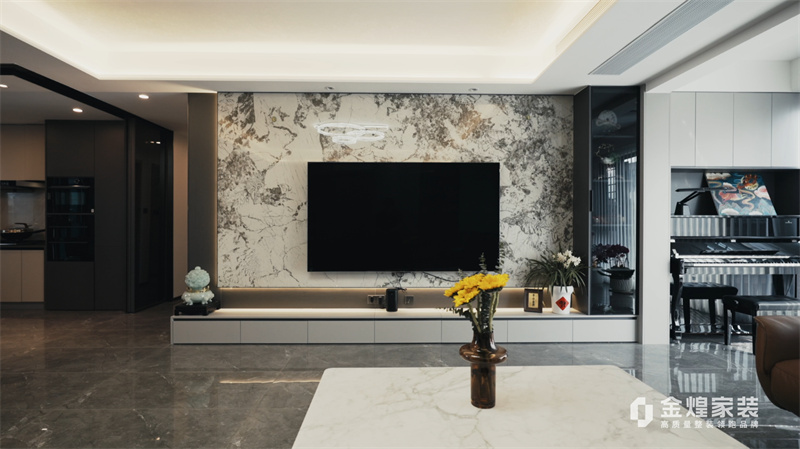 電視背景墻的大理石紋理、簡(jiǎn)潔的家具線條以及精心布置的燈光設(shè)計(jì),都體現(xiàn)了現(xiàn)代輕奢風(fēng)格的特點(diǎn)。同時(shí),通過(guò)添加一些鮮花和裝飾品,增加了空間的溫馨感和生活氣息。