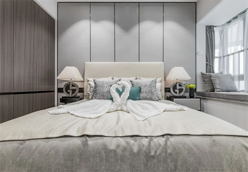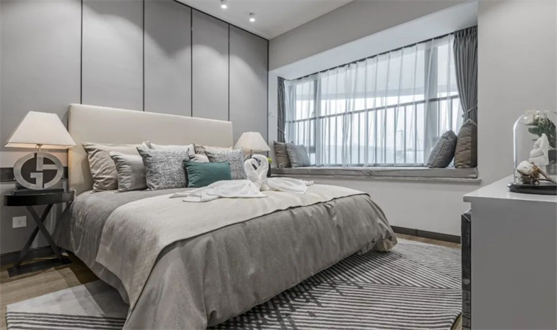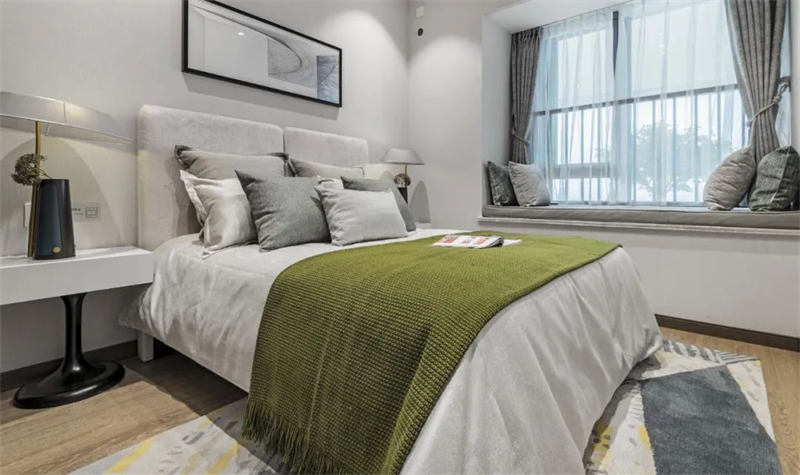 次臥設計同樣精致考究,精選舒適柔軟的床品和簡約裝飾畫,營造出輕松愜意的睡眠空間。柔和的色調(diào),讓人感到寧靜和舒緩,為身心帶來最佳的休息體驗。