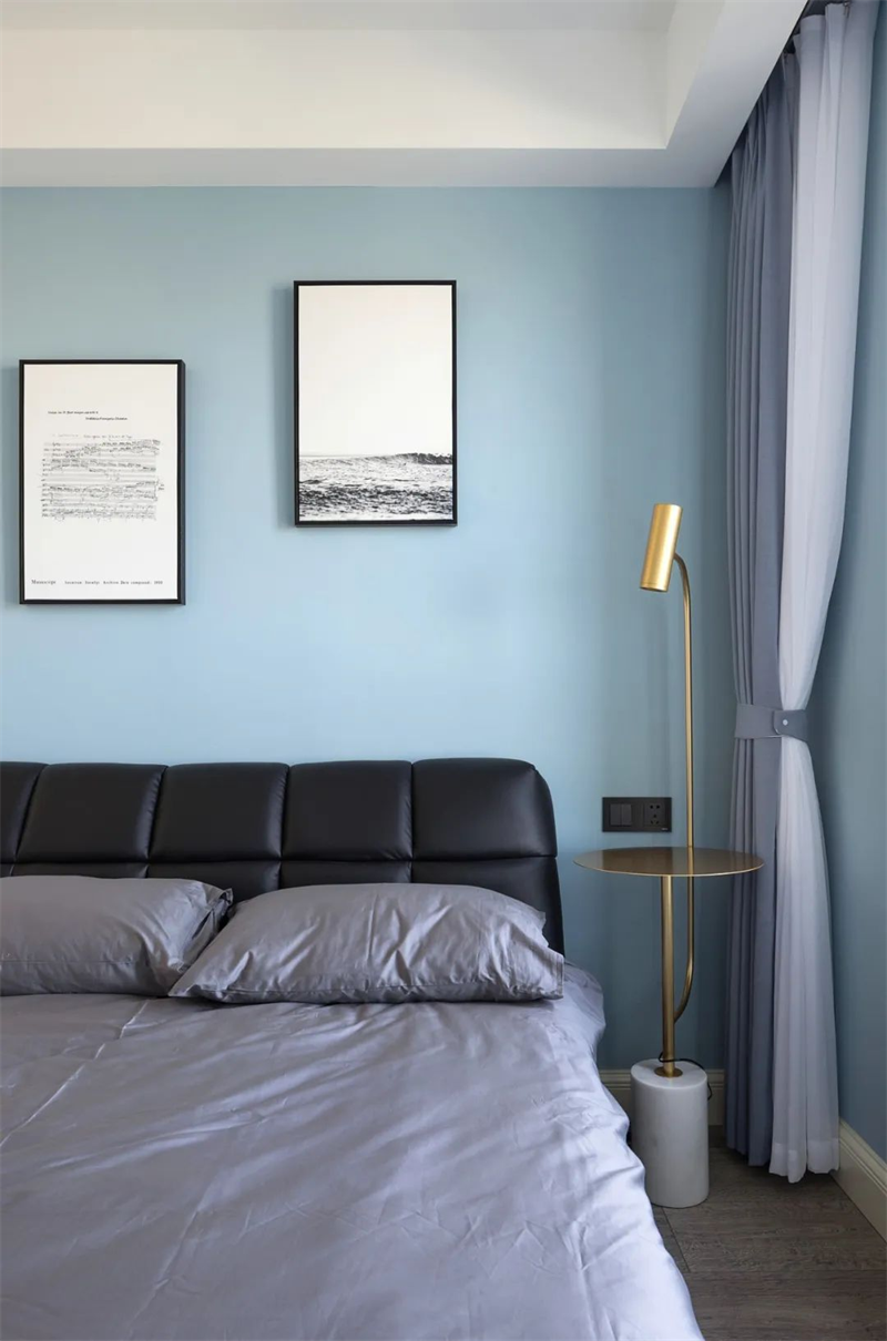 主臥采用了極簡的設(shè)計語言,白色和淺灰色墻面搭配木色地板,突顯整體空間的清新與寬敞感。床品選擇了高質(zhì)感的純棉,搭配一些柔和的裝飾枕,營造出溫馨的氛圍。簡約的床頭柜和燈具設(shè)計,為主人帶來舒適輕松的睡眠空間。